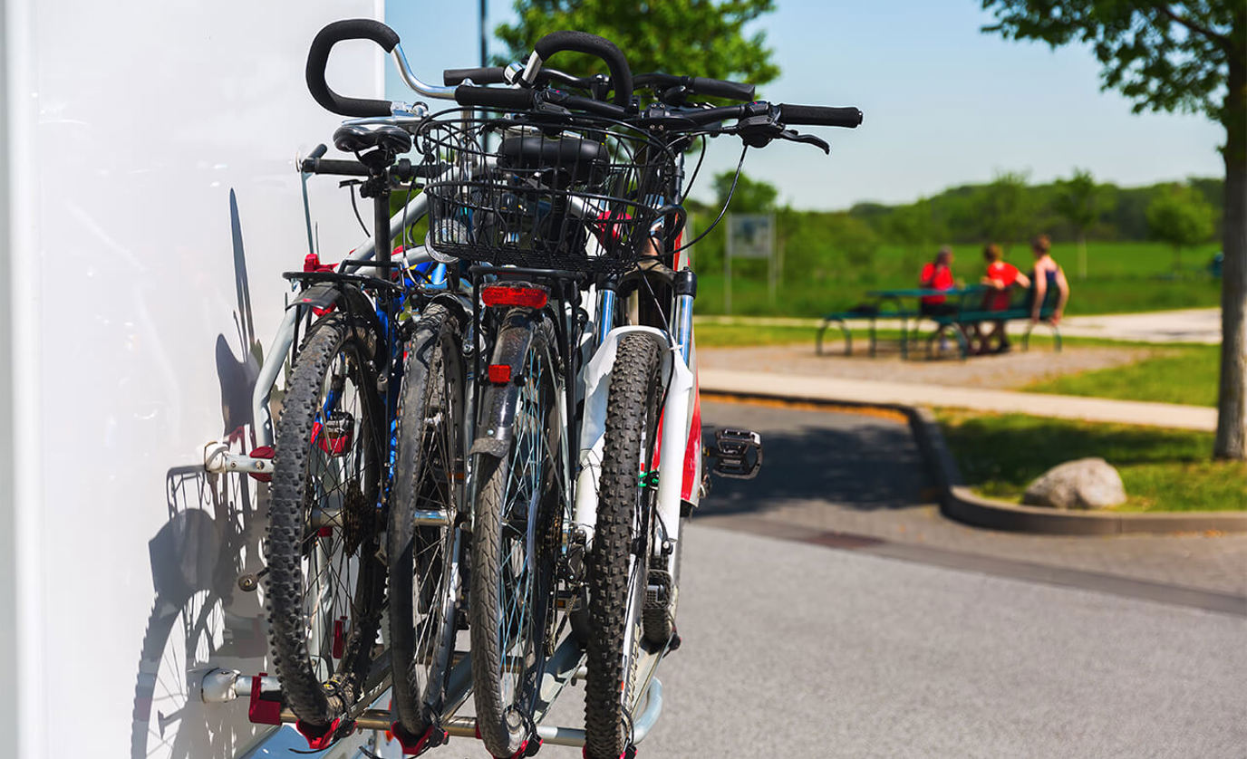 No hitch receiver? Your RV may be able to accommodate a bumper-mounted rack. These racks can carry two or more bikes, attach directly to the RV bumper and are available in hanging and platforms styles. A popular benefit of the bumper-mounted rack is that after installed, it leaves the rear ladder open for both roof and cargo access. Before installing this type of rack, be sure your RV’s bumper has a sturdy construction and is able to support the weight of both the bikes and rack. Whether you’re heading out on your RV adventure with one bike or four, there are plenty of easy ways to hitch them up. If you still aren’t sure which rack is best for you, our Cruise America RV experts will be able to point you in the right direction.